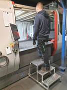 BU: Unsere Maschinenbediener fühlen sich mit dem neuen Maschinentritt deutlich sicherer“, sagt Geschäftsführer Dr. Markus Stanik. „Er ist extrem robust und besitzt eine große Standfläche. Vor allem für länger andauernde Montage- oder Wartungsarbeiten benötigen unsere Mitarbeiter einen sicheren Stand.“